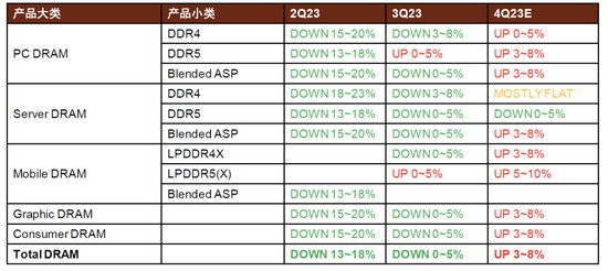 图表:2Q23-4Q23QE各季度DRAM产品价格及预测