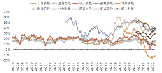 ► 成熟制程制造:1H23部分消费电子相关芯片已经完成去库存并进入补库存阶段,例如DDIC、CIS,我们认为晶圆代工厂稼动率“最坏时刻”或已经过去。GlobalFoundries 3Q23晶圆出货和ASP较2Q23基本持平;联电3Q23营收略有下滑,但公司28/22nm收入季度环比增长约10%;世界先进因为DDIC以及相关PMIC库存回落投片量增长3Q23营收环比增长3.8%。我们预计2024年个人电脑、智能手机的换机,以及自动驾驶、MR的放量,将带动各类芯片需求增长,驱动晶圆厂产能利用率复苏。这一过程中,随着近几年来中国大陆芯片设计公司的崛起以及在地化生产的趋势,我们认为中国大陆晶圆代工厂稼动率有望得到更快修复。