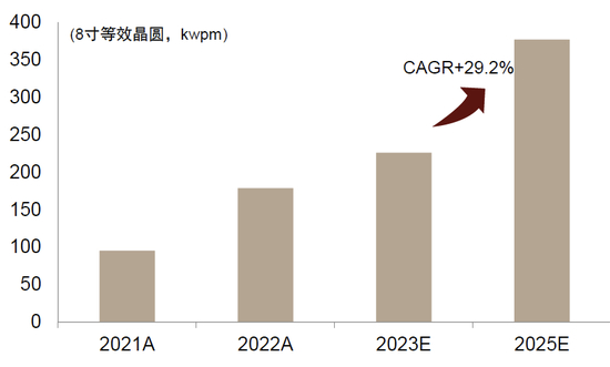 自2023年初以来,功率器件子板块整体持续跑输电子指数,且个股相较年初高点呈现50%左右跌幅,12月前向P/E基本调整至30x甚至以下水平。基本面来看,功率器件企业季度收入同比增速呈现明显放缓甚至转负,毛利率也呈现下滑。在经历了股价、业绩表现持续近一年欠佳的情况后,我们认为当下市场依然存在两方面的担忧:1)传统硅基二极管/MOS领域,下游面向消费、传统工业类型应用,在经历了去库存结束后市场需求回暖依然力道不足,加上产能充沛,产品偏同质化等供给端因素,虽然器件价格止跌,但暂未反映出明显的上行趋势;2)IGBT单管及模组领域,下游主要面向光伏储能、新能源汽车等应用,2023年供给紧张相较2022年有明显缓解。在下游汽车、光储行业增速由较高增长回归正常水平的预期下,国内供给端持续的释放可能带来竞争加剧,侵蚀中高端产品毛利率。我们预计2023-2025年,国内IGBT产能复合增速依然有望达到近30%。