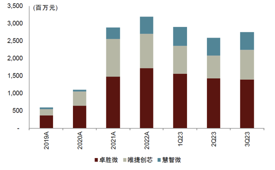 图表:中国大陆主要射频公司存货绝对值在2022年末逐步企稳