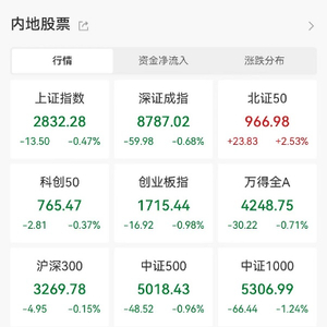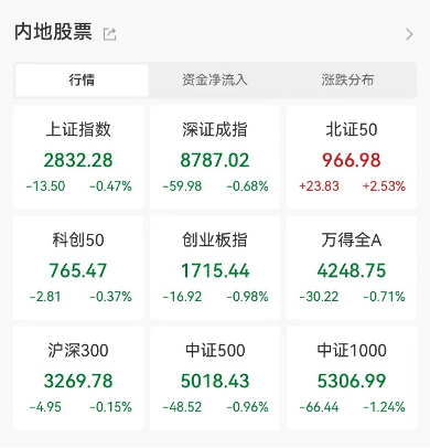 1月19日,A股三大指数震荡收跌,北证50再度走出逆市行情,全天大涨2.53%。全市场个股跌多涨少,成交额缩量至6804.06亿元。