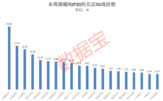 受此消息提振,北证50指数16日大涨5.3%,全周累计上涨3.96%,大幅跑赢同期沪指表现(-1.72%)。也是周内为数不多录得涨幅的主要指数。成份股中,艾融软件本周涨幅高达25.6%,恒进感应、丰光精密、流金科技等多股一周涨幅超过10%。