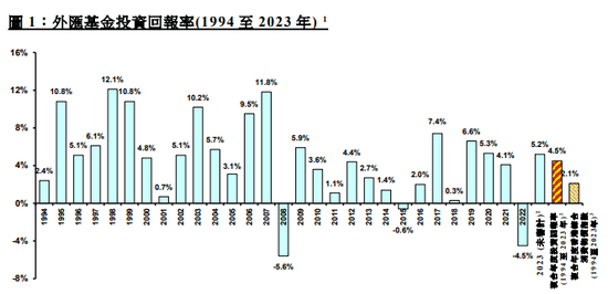 2023年香港外汇基金的投资回报率为5.2%,其中“投资组合”回报率为6.4%。而“支持组合”内的短期美元债券因债券收益率上升而利息收入增加,回报率达5.0%,是自2009年后最高水平。“长期增长组合”自2009年开展投资至2023年9月底的内部回报率年率为11.8%。