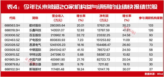 除了券商的看好,今年以来,多家业绩快报营收和利润双双增长的公司,还得到了公私募基金等其他机构的“围观”调研(见表4)。
