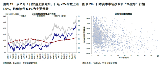 本轮日股上涨有四个主要因素造成:1)AI行情驱动日本科技股上涨。海外AI技术再突破导致全球出现新一轮科技行情,2月7日至今,日股半导体指数上涨7.1%,相关个股如东京电子大涨24.1%。2)市场预期加息延后至4月。日央行是否加息决策依赖通胀和经济是否已经出现可持续复苏,过去一段时间政策退出的时点预期有分歧。在地震后,市场对日央行加息的预期从1月推后至3或4月。近期日本实际GDP连续两个季度负增长的技术性衰退导致市场对日央行退出负利率时点预期进一步向4月靠拢。3)日元贬值。伴随日经指数上涨,日美汇率贬值至150日元/美元。我们在《日股30年新高的启示》指出,日元贬值情况下,日元计价的日股更容易上涨。除了对名义指数的直接影响外,日股60%左右收入来自海外,汇率贬值对企业也通常有利好。4)资本市场改革等其他因素继续延续(《日股还能买么?》)。