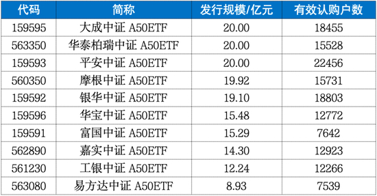 表3:首批10只中证A50ETF产品上市首日成交金额