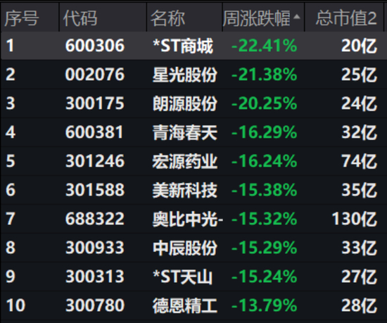 (上周十大熊股)