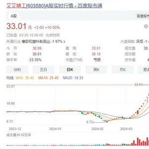 3月22日,艾艾精工股价大跌超8%。今日,艾艾精工小幅低开,随后窄幅震荡,午后出现拉升,尾盘涨停,全天换手率超23%。近15个交易日,公司股价大涨近250%。