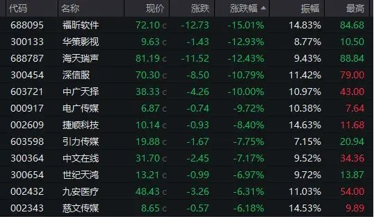 Kimi、HBM、高速连接器等热门概念今日集体下挫,截至收盘,Kimi概念方面,福昕软件跌约15%,华策影视、海天瑞声跌超12%,中广天择跌停,引力传媒、中文在线跌超7%。值得注意的是,华策影视、中广天择、掌阅科技等此前已连续3个交易日涨停。