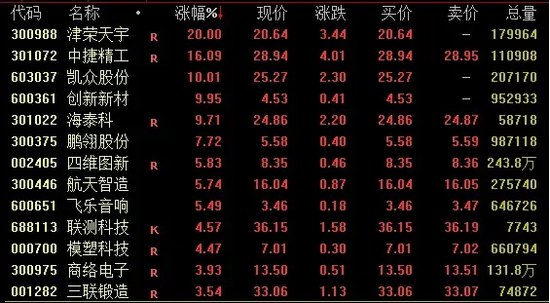 小米汽车概念盘中强势拉升,截至收盘,津荣天宇“20cm”涨停,中捷精工涨超16%,凯众股份、创新新材亦涨停,海泰科涨近10%。