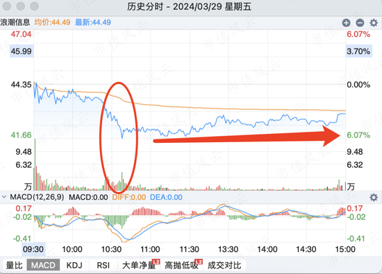 3月29日,浪潮信息平开,随后盘中不知道哪个没格局的出货砸盘,把股价砸到水下-6%,但明显有资金出来做了强承接,最后以-3%收盘。