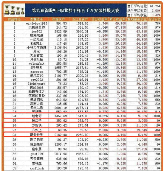 2011年6月末,以3.83%的收益率上榜第26名,基本上与赵老哥、心如止、职业炒手打了个平手。