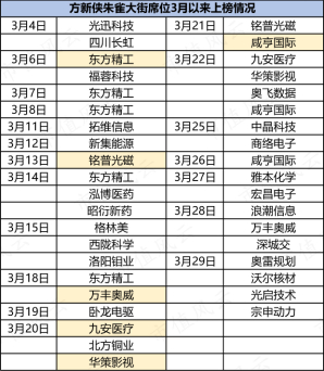 (来源:市值风云APP制表,标黄是方新侠3月内同一只个股上榜超2次)