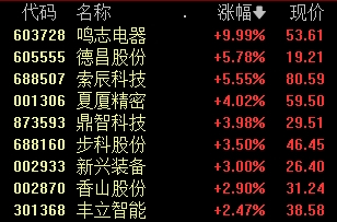 鸣志电器涨停,德昌股份、索辰科技涨超5%。
