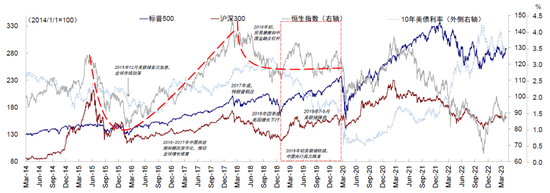 ► 美元与利率和黄金都反向:这种情形占比17.5%,也是目前正在经历的情况,往往表明美国经济相对全球更有韧性,使得美元和美债利率都偏强,避险和保值的需求更多来自美国以外。