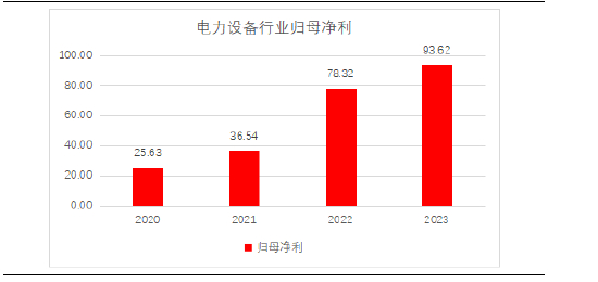 2020年河北电力设备行业实现归母净利润总额25.6亿元,2023财年实现归母净利润93.6亿元,三年复合增速达54%,占河北2023财年河北所有上市公司归母净利润的21%。电力设备行业利润增长系受产业升级,新能源赛道发力所致。行业内诸如晶澳科技、海泰新能、纳科诺尔等企业光伏电池组件、锂电专用设备业务快速增长。公司盈利虽一定程度上受短期供求关系变化影响,但考虑未来新能源装机需求明确,新能源汽车市场广阔,河北电力设备行业依旧保持良好成长性,将持续为河北经济发展提供动能。