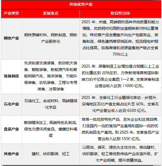 《河北省制造业高质量发展“十四五”规划》(以下简称“规划”)提出对于传统产业,将坚持锻长板、补短板,巩固和提升现有优势,持续推进传统优势产业转型升级。着重提出了对于钢铁产业、装备制造、石化产业的发展重点及其阶段性发展目标,兼顾了其他产业的总体发展方向,系统推动河北经济稳步发展,提质增速。