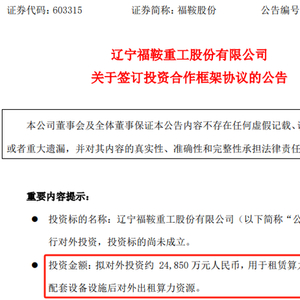 5月13日晚间,福鞍股份公告称,公司拟以现金出资方式设立合资公司,开拓AI算力租赁服务业务,按出资比例拟投资2.485亿元。
