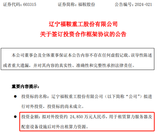 在福鞍股份看来,其此次跨界算力租赁业务,是为其业务转型和创新发展打造新的载体和平台,对其整体产业转型、业务多元化具有积极作用。