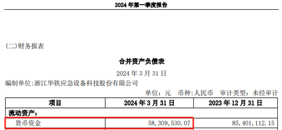 不过,截至2024年第一季度末,华铁应急账面货币资金余额0.58亿元。