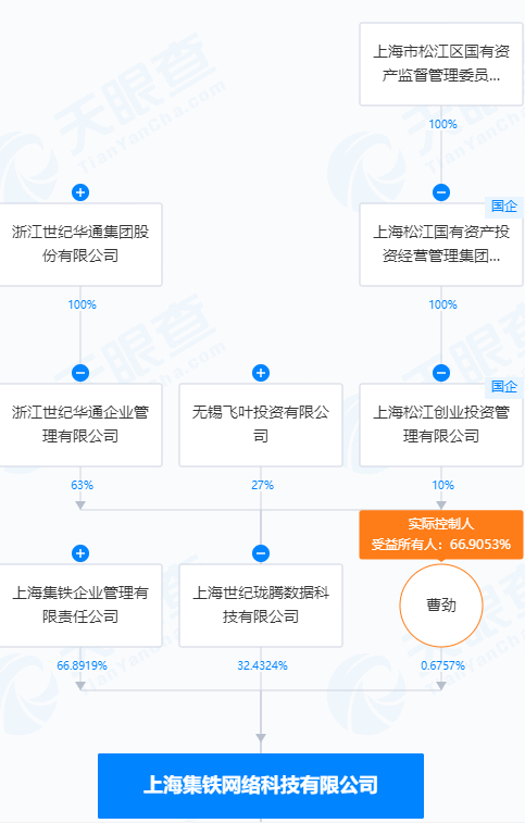 天眼查显示,集铁网络的第二大股东为上海世纪珑腾数据科技有限公司(简称“世纪珑腾”),系A股世纪华通的控股子公司,并且股东包含上海松江创业投资管理有限公司,系上海市松江区国资委旗下公司。