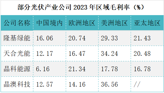 一位光伏产业公司负责人告诉《财经》,中国区项目招标参与企业多,竞争较为激烈,导致公司2023年中国境内毛利率低于境外。