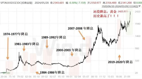 这是不同寻常的,从历史上看,黄金一般在美联储加息期间下跌,维持高利率期间价格震荡,在降息开启之后大涨。但最近一年多以来,黄金是直接无视了美联储的鹰派立场,不断突破历史纪录。