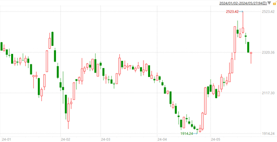 截至5月21日,COMEX白银、COMEX铜和COMEX黄金年初至今涨跌幅分别为31.93%、30.07%、16.71%,LME锡、LME镍初至今涨跌幅分别为34.31%、27.62%,ICE可可、ICE冷冻浓缩橙汁和CME瘦猪肉年初至今涨跌幅分别为71.64%、43.58%、和41.74%。