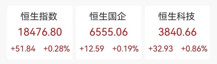 6月6日,港股三大指数早盘冲高,随后震荡回落,收盘小幅收涨。恒生指数早盘一度涨1.50%,收涨0.28%,报18476.8点。恒生科技指数一度涨2.06%,收涨0.86%,报3840.66点。恒生国企指数一度涨1.50%,收涨0.19%,报6555.06点。大市成交1145.63亿港元,南向资金净买入36.86亿港元。