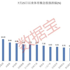 7月25日以来,体育指数触底回升,至今累计上涨5.35%,显著跑赢同期上证指数。概念股大幅上涨,莱茵体育、绿地控股、亚泰集团累计涨幅依次高达23.3%、12.03%、10.2%;另有深赛格、ST易购、信隆健康等10余股均涨逾5%。