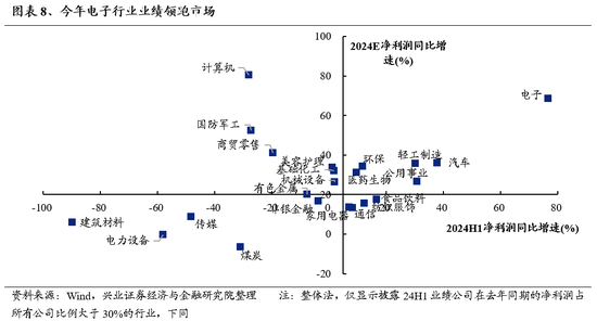 电子是今年市场业绩表现最亮眼的方向之一。截至8月24日,电子行业中报披露率已接近60%,从当前来看,上半年净利润同比增速超过70%,在申万全部31个行业中排名靠前。