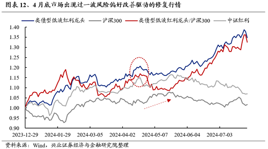 3月中旬至4月中旬时,市场同样出现过一波风险偏好收缩之下,主线向红利板块乃至其中的类债型低波龙头个股聚焦,类债型低波红利龙头的超额收益创阶段性新高。