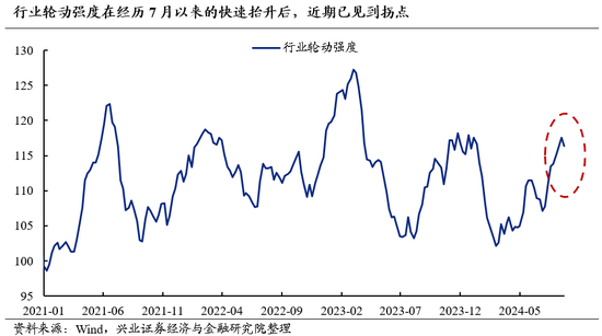7月以来A股赚钱效应较差的一个重要原因,就在于行业轮动速度过快、市场缺乏明确共识和主线。我们通过一级行业近五日涨跌幅排名变动绝对值加总,构建了行业轮动强度指数这一指标,用于量化市场的轮动速度。7月以来,我们看到这一指数持续上升,甚至一度逼近年内新高。而当前,随着财报陆续公布、中报业绩成为市场重要的交易线索,行业轮动已在边际放缓,市场共识正在逐步形成。