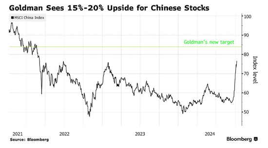 高盛将MSCI中国指数和沪深300指数的目标分别上调至84点和4600点,这意味着总回报率将较当前水平提高15%-18%。
