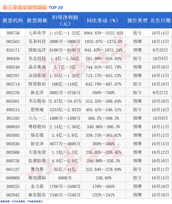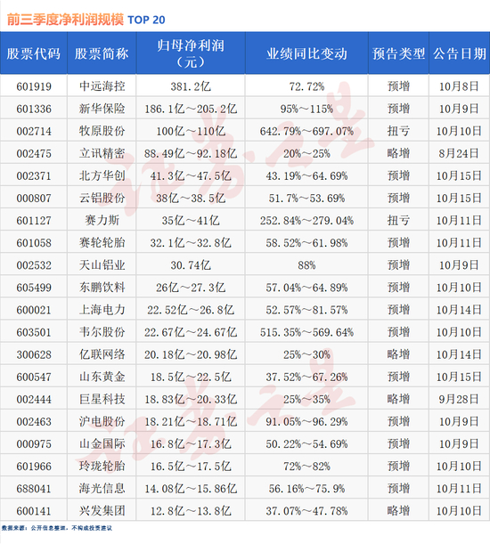 三季度业绩抢先看!超7成公司预喜(名单)
