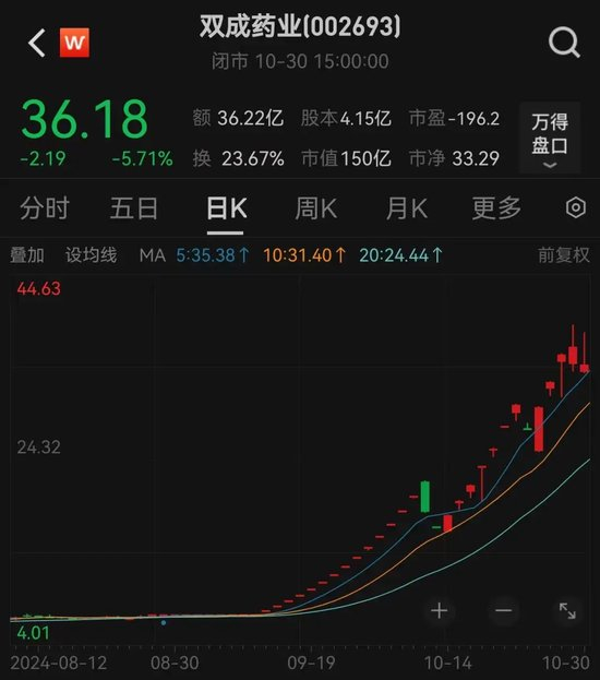 双成药业盘中最高涨幅达到4.3%,收盘时跌5.71%。该股因筹划收购半导体公司大热,自8月27日以来最大涨幅超7.5倍,是同期涨幅最高的牛股之一。