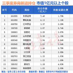 随着三季报披露结束,券商的最新持仓动向浮出水面。
