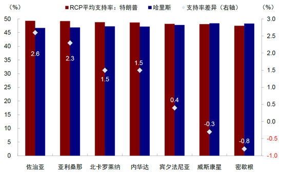资料来源:CNBC,RCP,UF Election Lab,中金公司研究部
