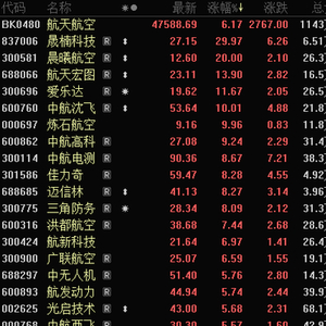 11月5日早盘,军工板块大面积爆发,华如科技、晨曦航空收获20%的涨停板,爱乐达、新光光电、上海瀚讯、华丰科技涨超10%,利君股份、中航沈飞、甘化科工、炼石航空触及10%涨停。