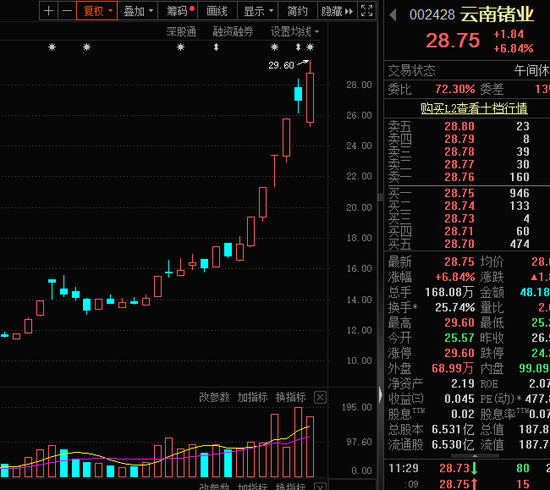 另一只抖音主播热推的个股是云南锗业,今天早盘则反其道行之,股价续创新高,盘中一度涨停,上午成交额高达48亿元,换手率近26%。