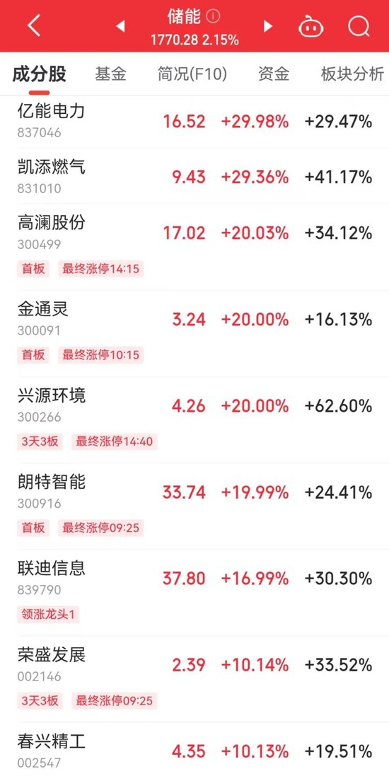储能板块掀涨停潮