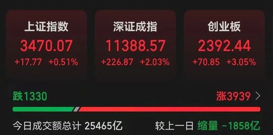 全市场成交额25465亿元,为连续5个交易日突破2万亿元,连续突破2万亿元的交易日天数创历史纪录。