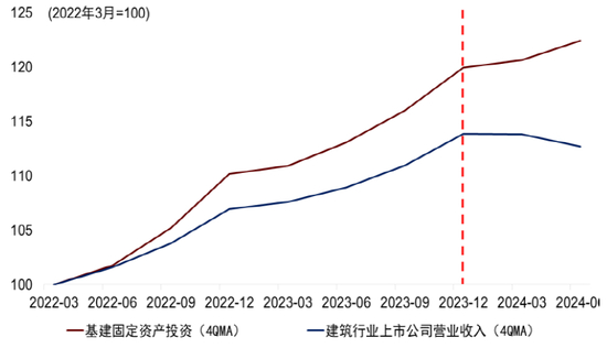 图表16:基建FAI与上市建筑公司的营收背离加大