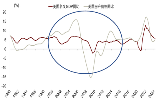 低物价循环的第四个机制是“伯南克效应”,也就是说,如果出现债务违约,那么银行的放贷能力可能受到影响,进一步拖累总需求。在中国,比较持续的审慎监管,加上银行业有比较充足的坏账拨备与资本储备,“伯南克效应” 并未显现。2024年10月12日国新办新闻发布会[3]指出将补充银行资本金,这将进一步巩固我国银行机构支持实体经济的能力。与此不同,美国次贷危机期间,其房地产调整带来的“伯南克效应”非常显著,主要因为彼时美国与房地产有关的金融衍生品体量大,房价调整对金融机构造成了较大冲击,进而对美国经济带来很大的负面影响。