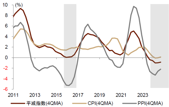 当前经济面临的主要矛盾是需求缺口持续扩大,物价走弱。我们预计到2024年底,GDP平减指数同比可能连续7个季度为负。2012年到2016年期间,物价也曾面临较大下行压力,PPI同比在较长的时间内持续为负,但反映下游需求强弱的CPI表现较稳,同比均值为2%左右。如图表1所示,本轮GDP平减指数下行过程中,PPI的拖累小于上一轮,而CPI的拖累明显加大。这说明需求不足而非供给过剩是本轮物价下行的根源,提振需求而非广泛缩减产能是提振物价的关键。