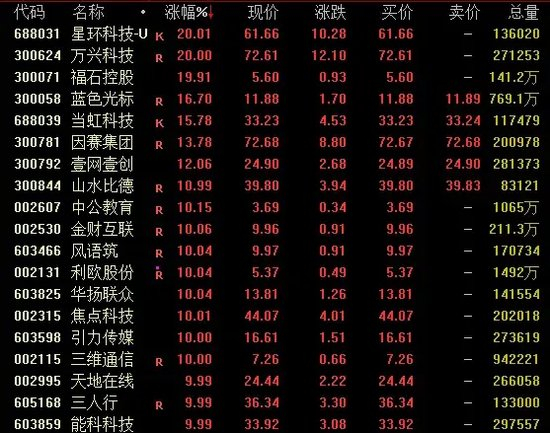 AIGC概念盘中走势活跃,截至收盘,星环科技、万兴科技、福石控股20%涨停,蓝色光标涨近17%,当虹科技涨近16%,因赛集团涨近14%。此外,信雅达开盘一分钟即拉涨停。