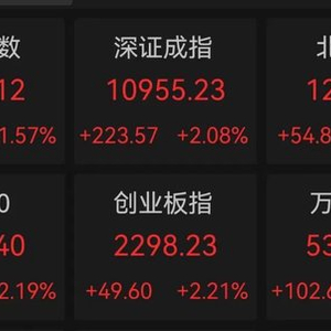12月10日早盘,A股市场大面积上涨,开盘超5200股飘红。上证指数开盘上涨2.58%,直逼3500点。深证成指、创业板指、科创50指数分别上涨3.66%、4.88%、4.8%。