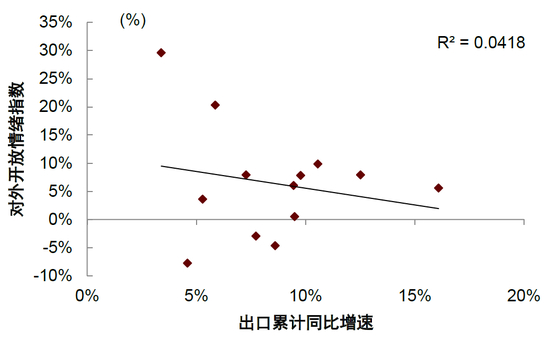 图表9:出口增速与“对外开放”情绪指数负相关