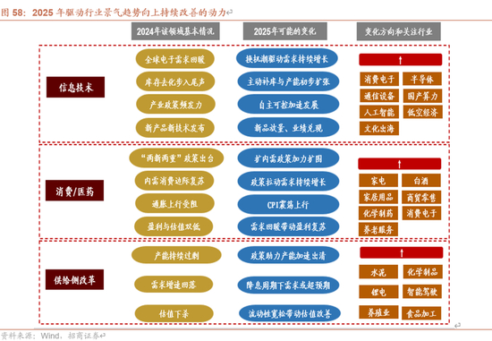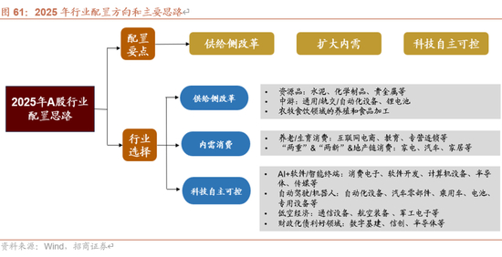 中短期2025年细分行业重点推荐: 1)持续受益于AI技术应用发展的软硬件及智能终端,如消费电子、软件开发、通信设备、半导体、传媒等;2)自动驾驶及人形机器人相关板块,如自动化设备、汽车零部件、电池、专用设备等;3)财政化债利好领域:数字基建、信创、半导体等领域。
