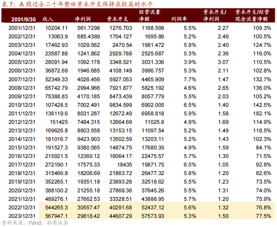 目前中国的上市公司资本开支占净利润和经营现金流量净额偏高,如果内卷式竞争缓和,资本开支强度下降,未来中国上市公司的自由现金流有明显提升的可能,从而使得内在价值不断提高。